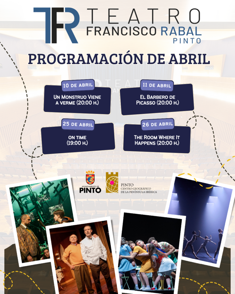 PINTO/06 ABRIL 2026.- Pinto convierte el mes de abril en un auténtico escaparate cultural donde las artes escénicas, la literatura y la creatividad toman protagonismo. El Teatro Francisco Rabal acoge una programación pensada para todos los públicos que reúne teatro contemporáneo, grandes nombres de la interpretación y propuestas de danza innovadoras.
